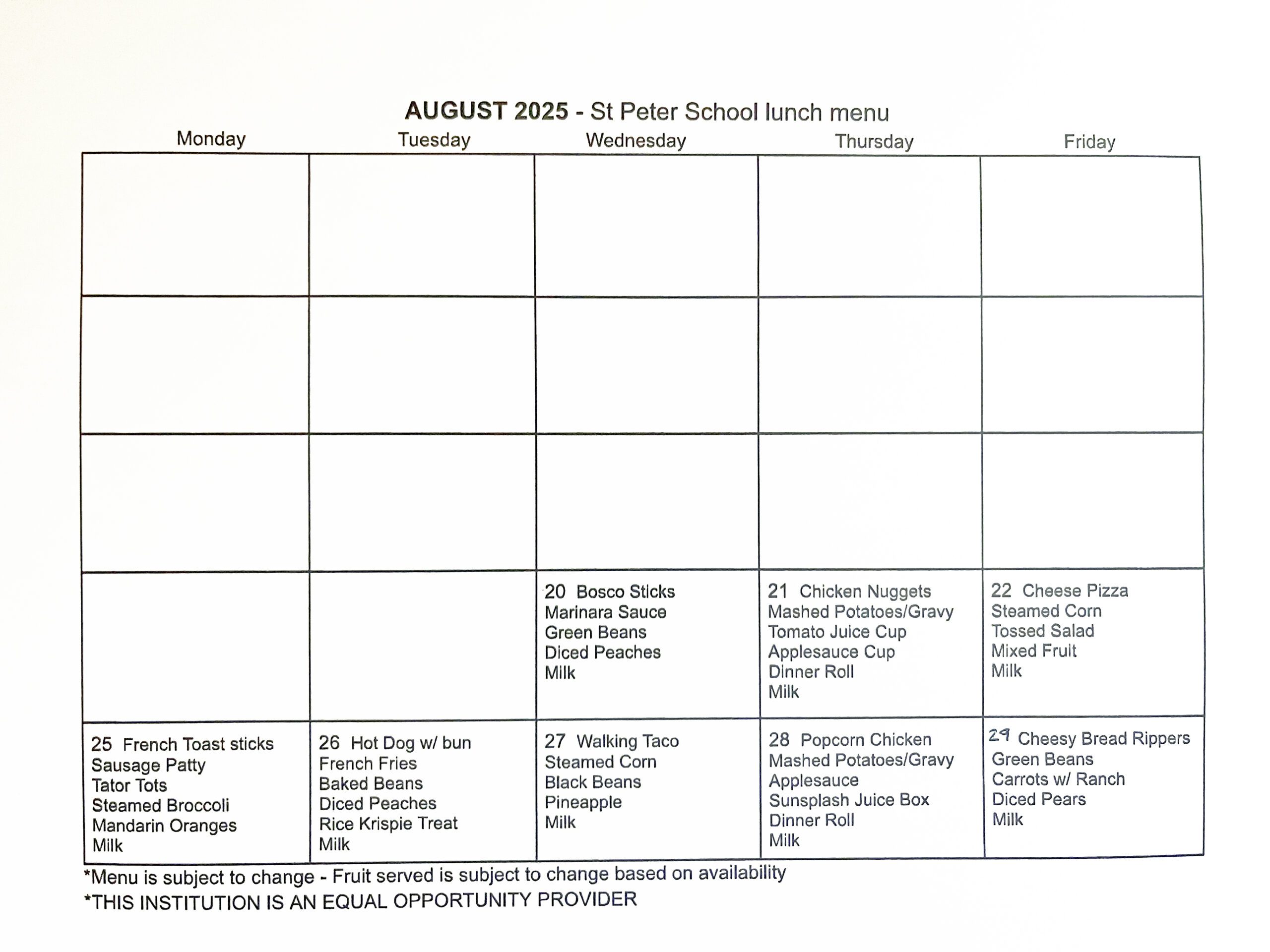 Due to high demand and problems with inventory, we will only be selling ice cream on Fridays during lunch. We can still accommodate whole class birthday treats as long as we are notified in advance to ensure we have enough available. Sorry for the inconvenience.